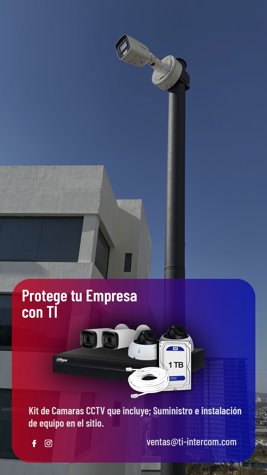 Equipo CCTV suministrado e instalado con estándares de calidad probados y en correcto funcionamiento. ¡Garantía certificada!